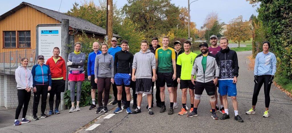 Um Punkt 9 Uhr wurde der RUL bei der Schreinerei im Hinterdorf gestartet. Leichtes Gefälle bis zur Dorfmitte, dann begann bereits der erste Anstieg. An der Kirche und der Wanne vorbei, dann eine kurze Verschnaufpause auf dem ebenen Kiesweg bevor es weiter zum ersten Verpflegungsposten in der Dorfmitte von Regensberg bergauf ging. Bei Hochnebel, mit vereinzelten, zaghaften Sonnenstrahlen, aber idealen Lauftemperaturen wurde auf der Wehntaler Talseite der 2. Kontrollposten, die Lägernweid angepeilt. Mit schon sagenhaftem Vorsprung von rund 10 Minuten setzte sich unser Vize-OT Thomas vom Rest der Läufer ab. Bei eher ebenem Geländeverlauf, aber vereinzelt steilen Passagen und überlangen Treppen ging es dem Wendepunkt beim Schartenfels in Wettingen entgegen. Einige dachten sich wohl; der Rest ist nur noch Zugabe. Dem war aber bei weitem nicht so. Nach der 3. Stärkung ging es Richtung Otelfingen zum letzten Kontroll- und Verpflegungsposten. Obwohl keine grösseren Steigungen mehr zu bewältigen waren, hatten die meisten Hobbysportler, sie hatten inzwischen über 15 Kilometer Laufstrecke in den Knochen, etliche Mühe die immer leicht ansteigende Strecke zu bewältigen. Sichtlich mitgenommen wurde die letzte Verpflegung und Verschnaufpause genossen. Mit gegenseitigen Aufmunterungen wurde das letzte Teilstück zurück nach Buchs unter die Füsse genommen. Endlich am Ziel angekommen, konnten sich die Sportler mit einer warmen Dusche etwas entspannen und sich für den anschliessenden gemütlichen Teil vorbereiten. Die Küchencrew sorgte mit einem Spaghettiplausch und Dessert für das leibliche Wohl.